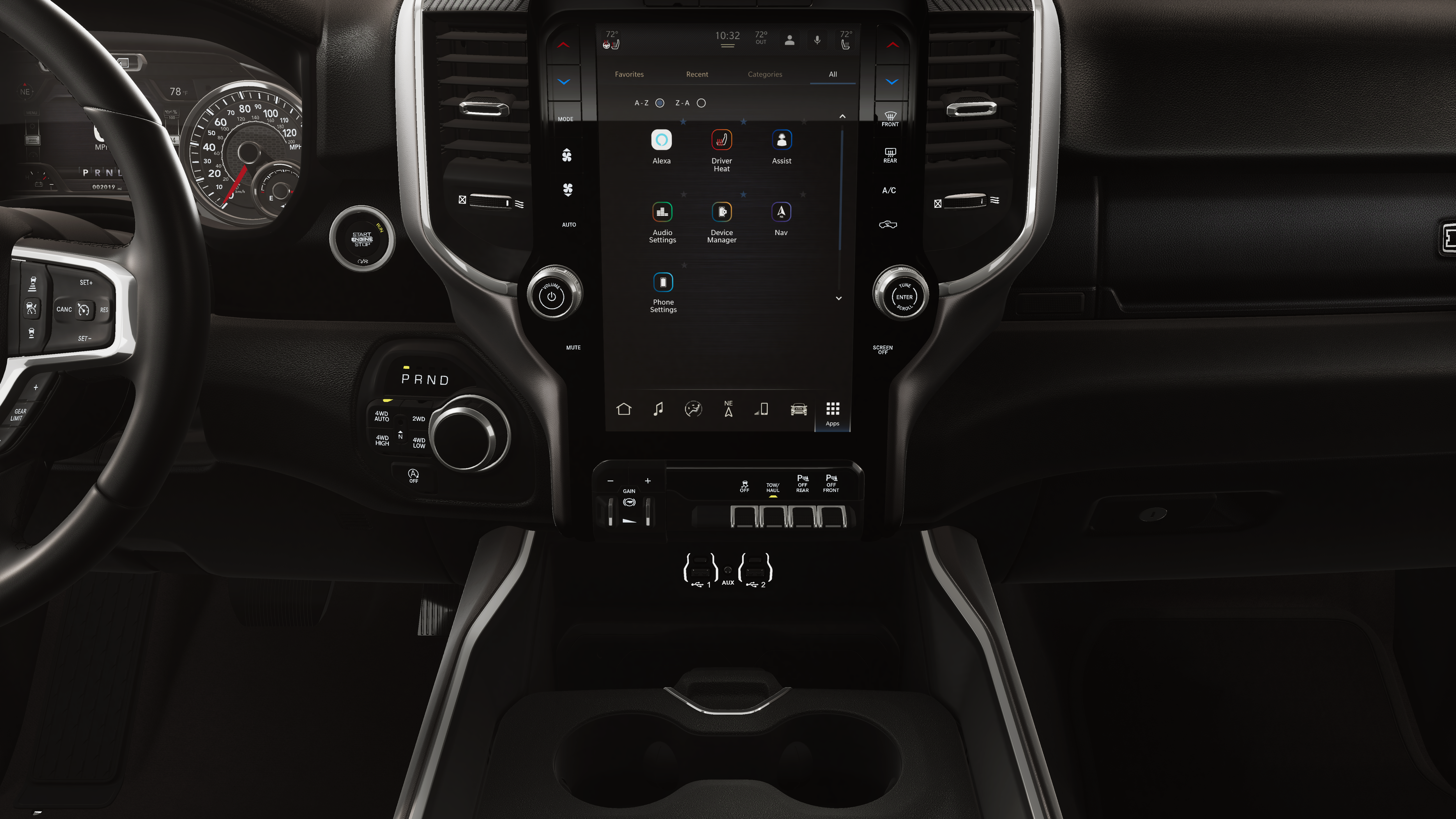 BIG HORN LEVEL 2 EQUIPMENT GROUP SiriusXM Radio Service, Power Adjustable Pedals, Leather Wrapped Steering Wheel, 12 Touchscreen Display, Glove Box Lamp, Auto Power-Folding Mirrors, 115V Auxiliary Rear Power Outlet, Media Hub w/2 Charge Only USBs, Heated Front Seats, Security Alarm, Black Premium Power Mirrors, Premium Overhead Console, 9 Amplified Speakers w/Subwoofer, Disassociated Touchscreen Display, Body Color Fender Flares, Remote Tailgate Release, 115V Auxiliary Power Outlet, LED Dome Lamp w/On/Off Switch, Universal Garage Door Opener, 2nd Row In Floor Storage Bins, Sun Visors w/Illuminated Vanity Mirrors, LED Footwell Lighting, Rear Window Defroster, Rear View Auto Dim Mirror, Rear Power Sliding Window, GPS Navigation, Overhead LED Lamps, Wheels: 20 x 9 Aluminum Chrome Clad, ENGINE: 5.7L V8 HEMI MDS VVT ETORQUE Active Noise Control System, Heavy Duty Engine Cooling, Passive Tuned Mass Damper, GVWR: 7,100 lbs, Dual Rear Exhaust w/Bright Tips, G/T Exhaust, 18 Aluminum Spare Wheel, NIGHT EDITION Tires: 275/55R20 OWL All Season, Bridgestone Brand Tires, Accent Color Premium Power Mirrors, Exterior Mirrors w/Supplemental Signals, Black Headlamp Bezels, Exterior Mirrors Courtesy Lamps, Grille Black Surround Black Mesh, Auto Power-Folding Mirrors, Wheels: 20 x 9.0 Aluminum Painted Clad, Auto Dim Exterior Driver Mirror, Black Exterior Truck Badging, Anti-Spin Differential Rear Axle, Accent Color Door Handles, Accent Color Tailgate Handle, Black Interior Accents, Dual Exhaust w/Black Tips, Body Color Front Bumper, Body Color Rear Bumper w/Step Pads, Black Tail Lamp Bezels, RAM Grille Badge - Black, Black Painted Exterior Mirrors Caps, TRANSMISSION: 8-SPEED AUTOMATIC (8HP75).