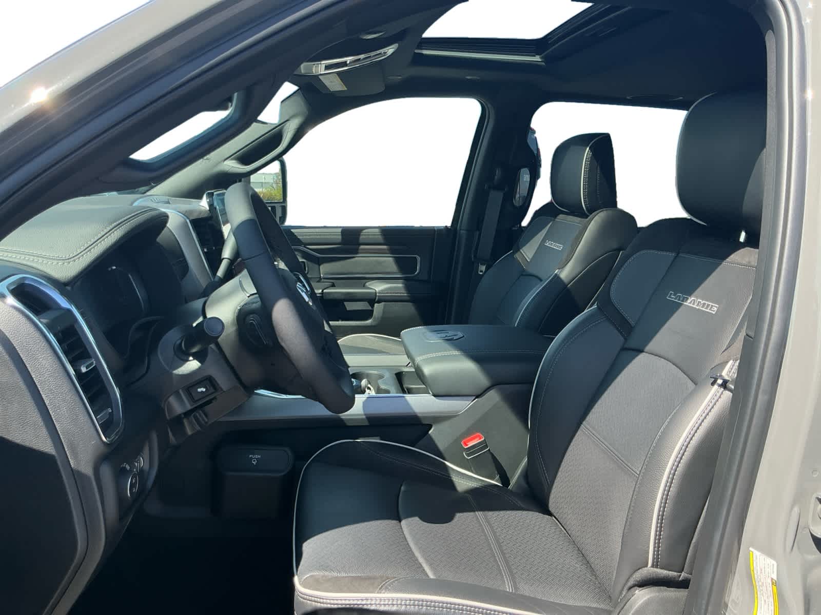 LARAMIE LEVEL 2 PLUS EQUIPMENT GROUP Power Adjustable Pedals w/Memory, For Details Visit DriveUconnect.com, For More Info, Call 800-643-2112, Power Deployable Running Boards, Drowsy Driver Detection, MOPAR Deployable Bed Step, Active Lane Management System, Remote Tailgate Release, 17 Speaker harman/kardon® Premium Sound, 2nd Row In Floor Storage Bins, CTR Stop Lamp w/Cargo View Camera, Rain Sensitive Windshield Wipers, LED Bed Lighting, Traffic Sign Recognition, Adaptive Steering System, Auto Dimming Exterior Mirrors, Foam Bottle Insert (Door Trim Panel), 14.4 Touchscreen Display, Power Heat Fold Memory Telescopic Mirrors, Radio: Uconnect 5 Nav w/14.4 Display, MOPAR Spray In Bedliner, Auto High Beam Headlamp Control, Exterior Mirrors w/Memory, Auto Dimming Exterior Passenger Mirror, Auto, DUAL REAR WHEELS Clearance Lamps, Tires: LT235/80R17E BSW All Season, 17 Steel Spare Wheel, Box & Rear Fender Clearance Lamps, Center Hub, 6000# Front Axle w/Hub Ext, Wheels: 17 x 6.0 Polished Aluminum, Nexen Brand Tires, GVWR: 14,000 lb, POWER SUNROOF, TOW-MODE DIGITAL REAR VIEW MIRROR PACKAGE Digital Rearview Mirror, Tow-Mode Camera (Wired), TRANSMISSION: 8-SPEED TORQUEFLITE HD AUTOMATIC, BLACK, LEATHER TRIMMED BUCKET SEATS Bucket Seats, Dual Wireless Charging Pad, Ventilated Front Seats, Radio/Driver Seat/Mirrors/Pedals Memory, Full Length Upgraded Floor Console.