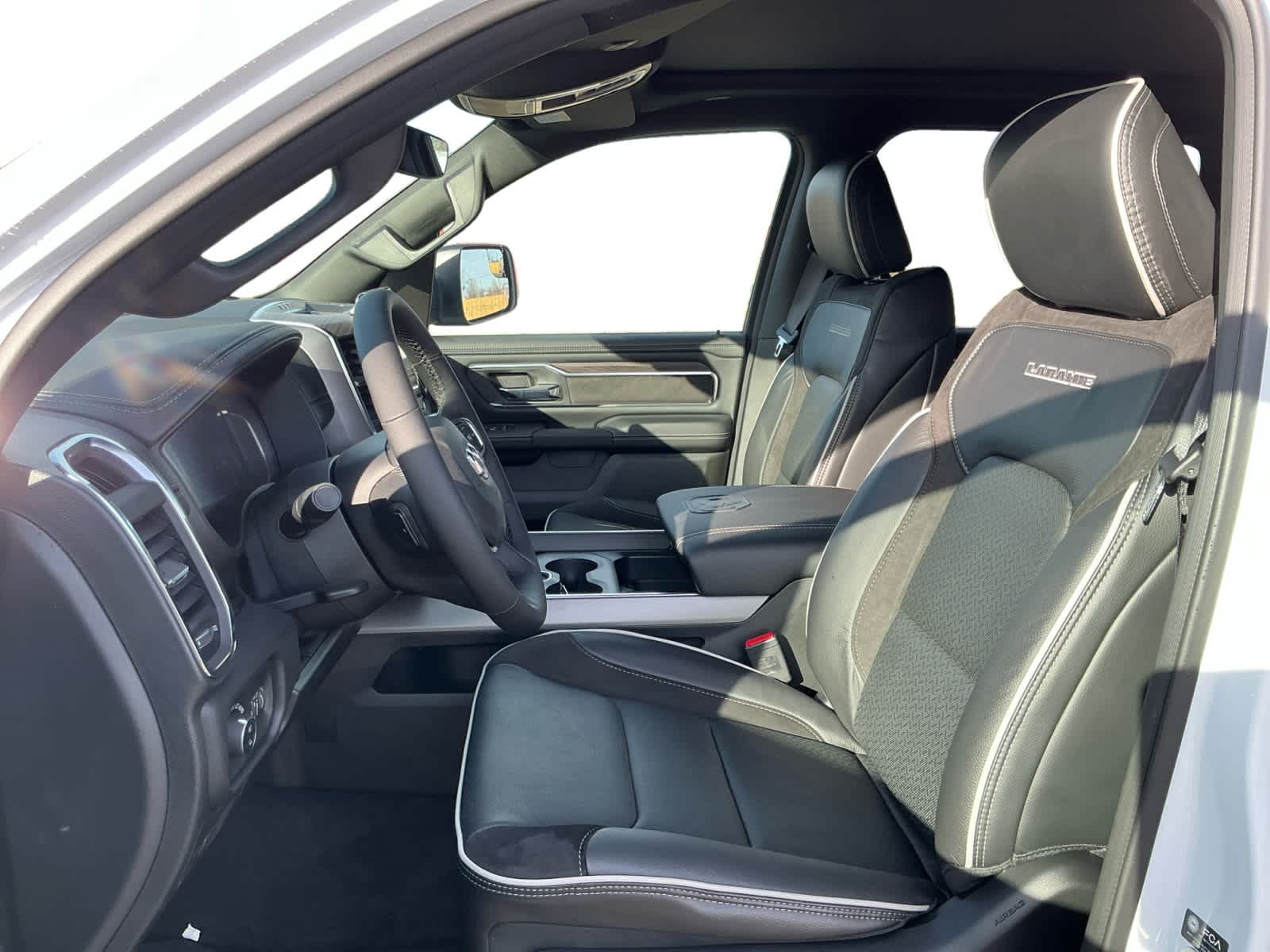 Leather Seats, 4x4, Heated Driver Seat, Heated Rear Seat, Cooled Driver Seat Ram Laramie with Bright White Clearcoat exterior and Black interior features a Straight 6 Cylinder Engine with 420 HP at 5200 RPM*.