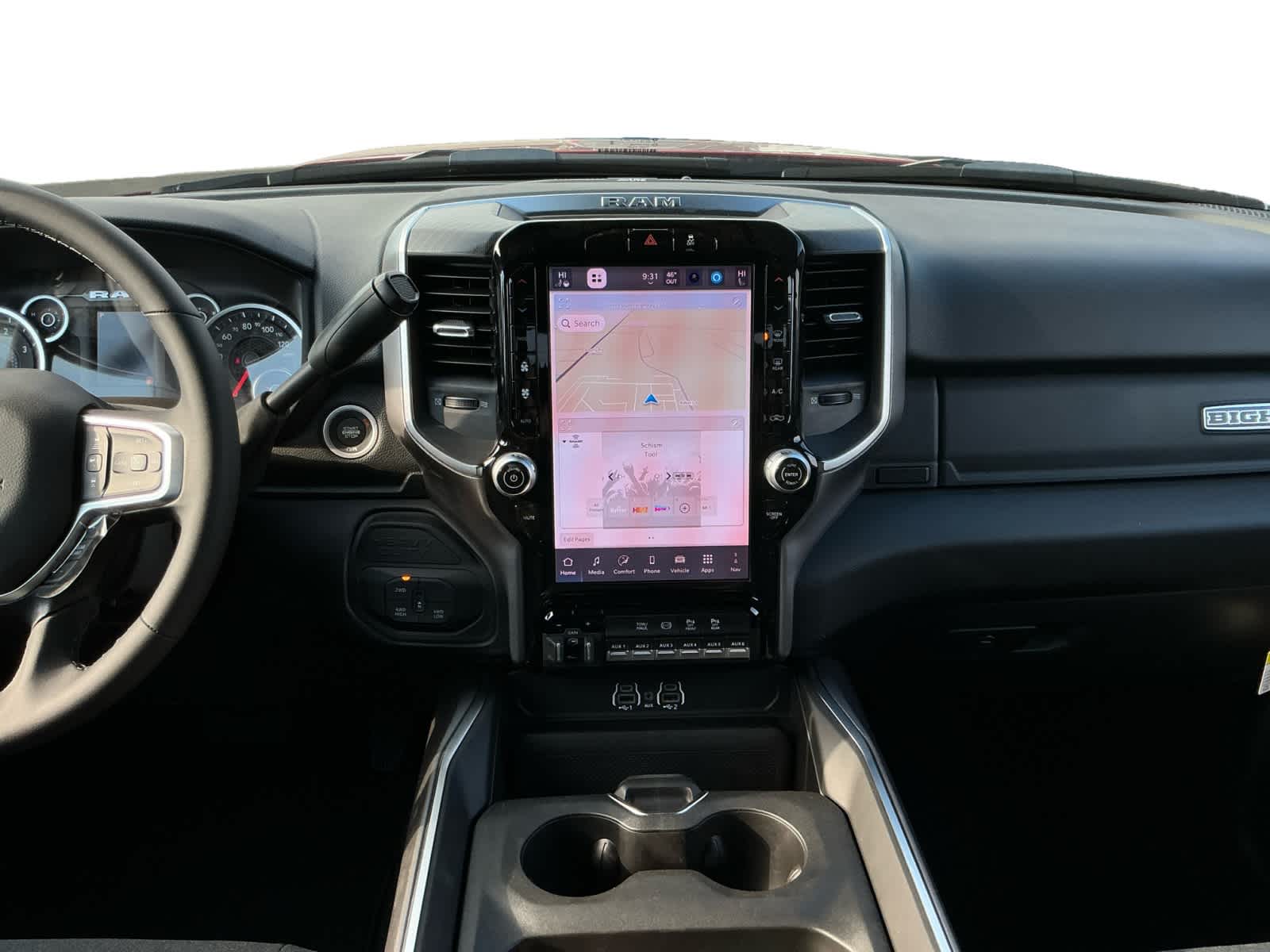 BIG HORN LEVEL 1 PLUS EQUIPMENT GROUP Emergency Vehicle Alert System (EVAS), 12 Touchscreen Display, Glove Box Lamp, Auto Power-Folding Mirrors, Footwell Courtesy Lamp, Anti-Spin Differential Rear Axle, MOPAR Deployable Bed Step, Alexa Built-In, Forward & Reverse Utility Lights, Locking Lower Glove Box, Remote Start System, 9 Alpine Speakers w/Subwoofer, Disassociated Touchscreen Display, Dual Glove Boxes, 2nd Row In Floor Storage Bins, Rear View Auto Dim Mirror, Rear Dome w/On/Off Switch Lamp, LED Bed Lighting, GPS Navigation, SiriusXM w/360L, Connected Travel & Traffic Services, Foam Bottle Insert (Door Trim Panel), Big Horn IP Badge, Off-Road Info Pages, Trailer Tow Pages, HD Radio, Radio: Uconnect 5 Nav w/12.0 Display, Power Heated Folding Telescopic Mirrors, Steering Wheel Mounted, BLACK, PREMIUM CLOTH BUCKET SEATS Bucket Seats, Power Adjust 8-Way Driver Seat, Folding Flat Load Floor Storage, Rear 60/40 Folding Seat, Front Seat Back Map Pockets, Power 2-Way Driver Lumbar Adjust, Full Length Upgraded Floor Console, TRANSMISSION: 8-SPEED TORQUEFLITE HD AUTOMATIC, HEATED SEATS & WHEEL GROUP Heated Steering Wheel, Heated Front Seats.
