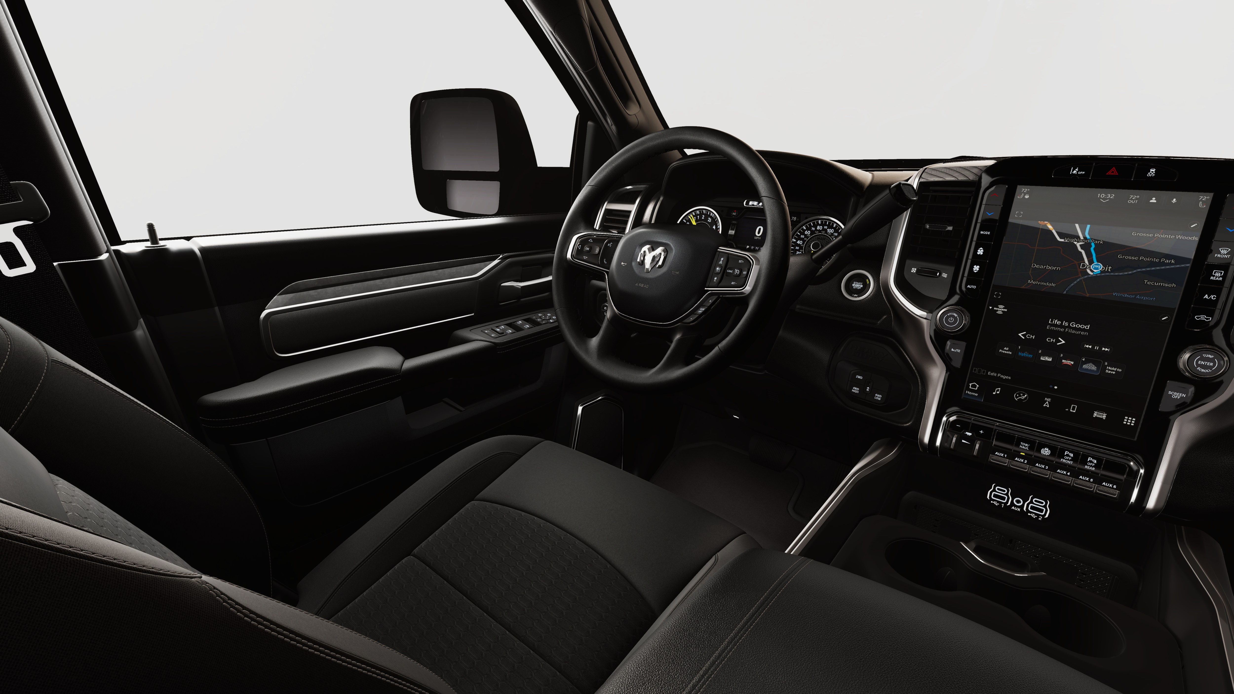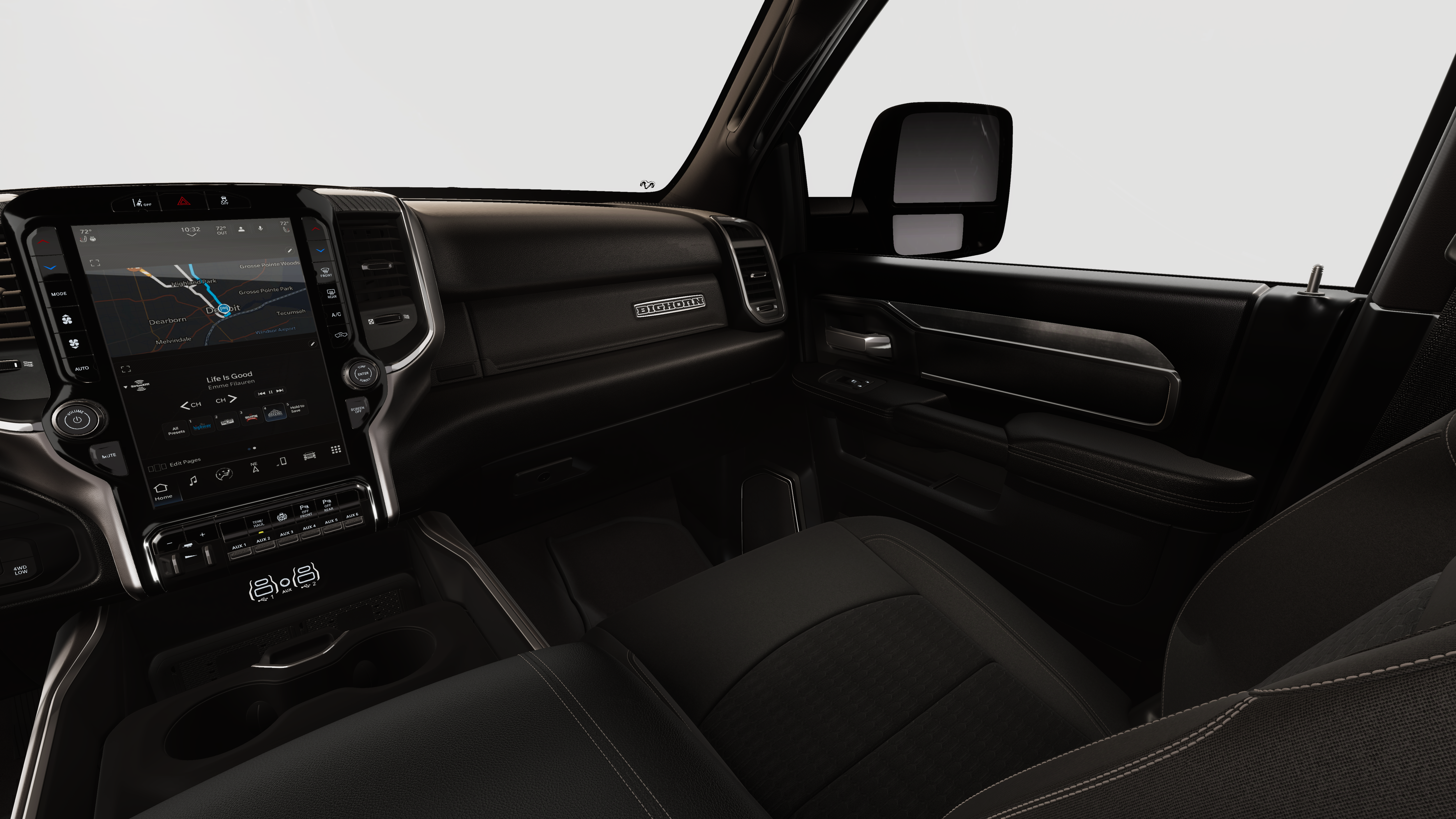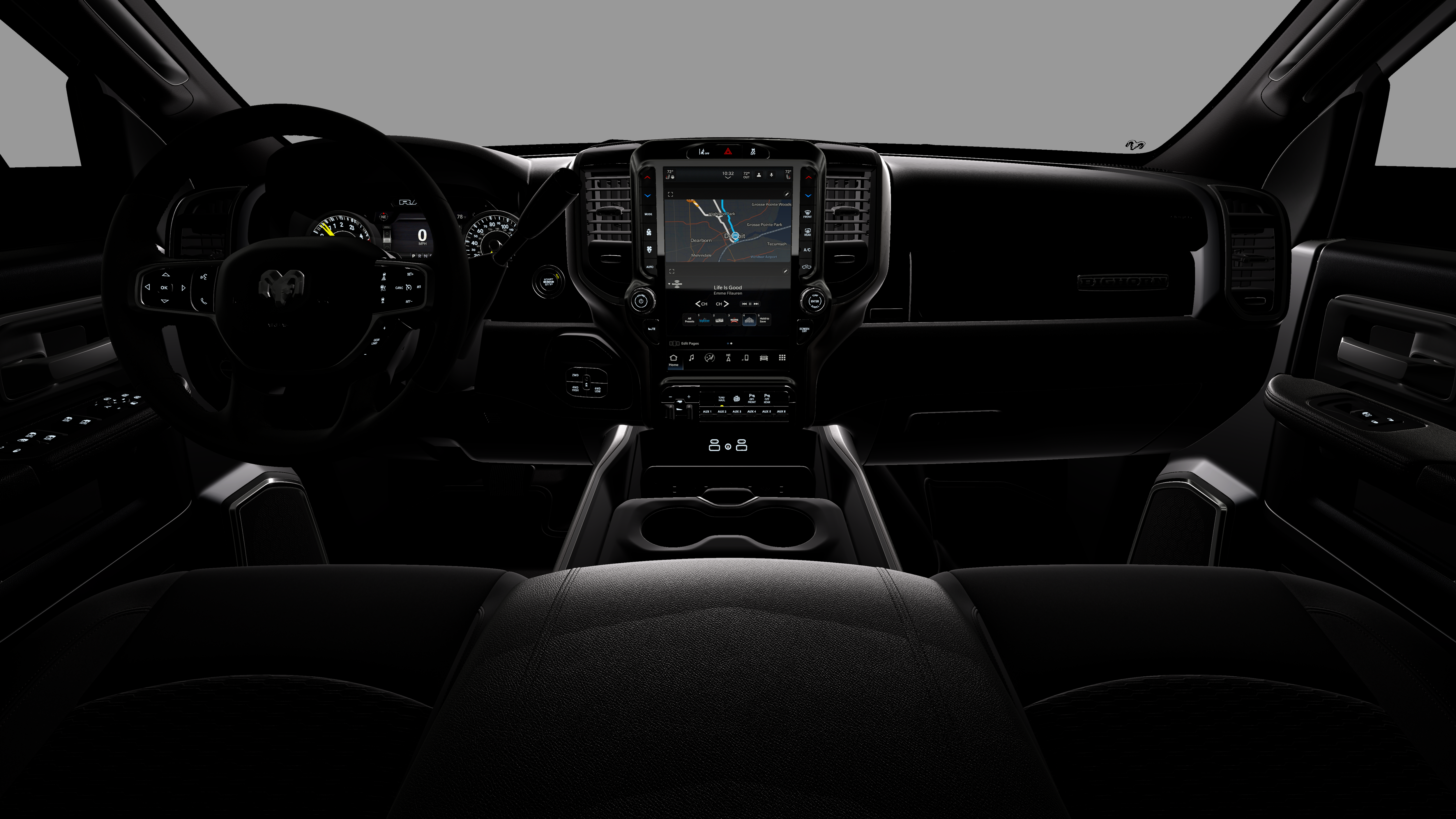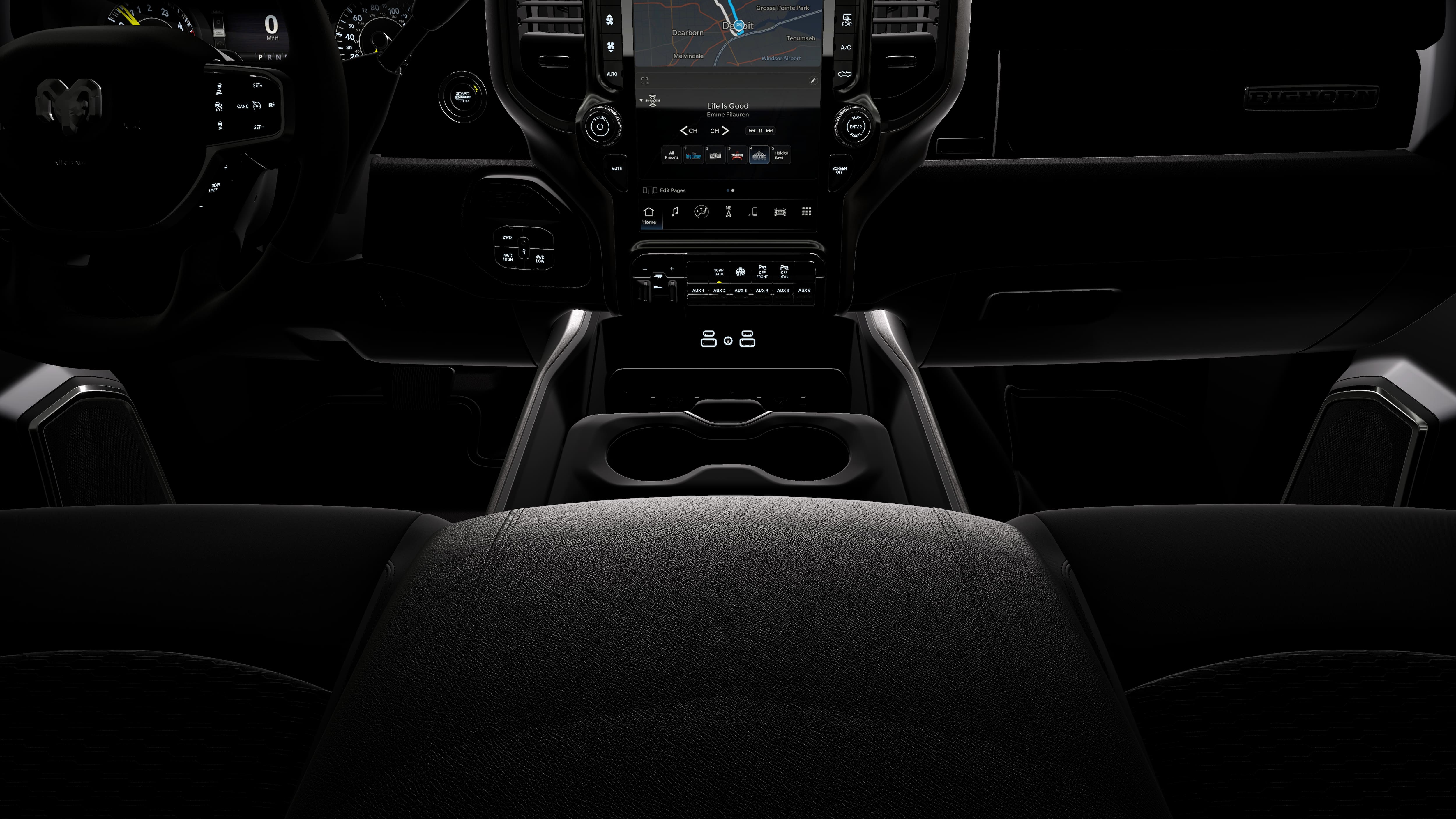 4x4, iPod/MP3 Input, CD Player, Trailer Hitch, Keyless Start Ram Big Horn with Ceramic Gray Clearcoat exterior and Black interior features a Straight 6 Cylinder Engine with 430 HP at 2800 RPM*.