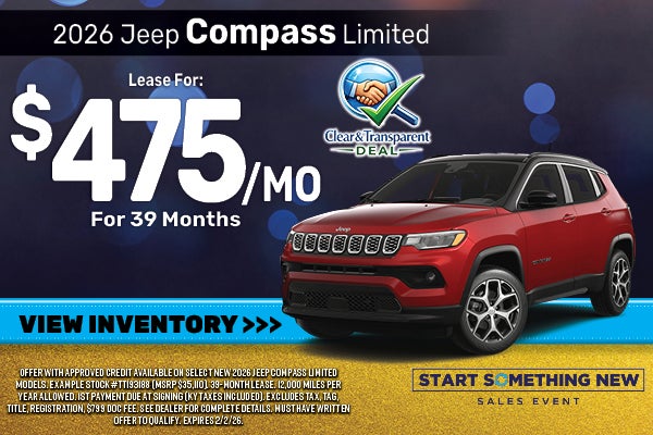 Lease a 2026 Jeep Compass Limited for $475/mo for 39 Months