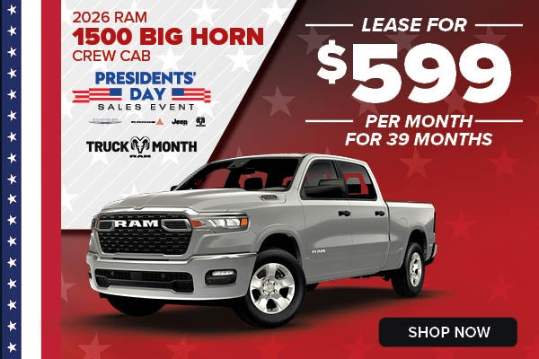 Lease a 2026 RAM 1500 Big Horn Crew Cab for $599/mo for 39 Months